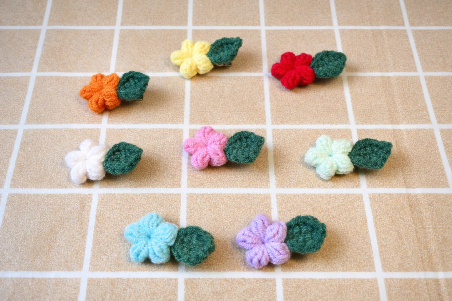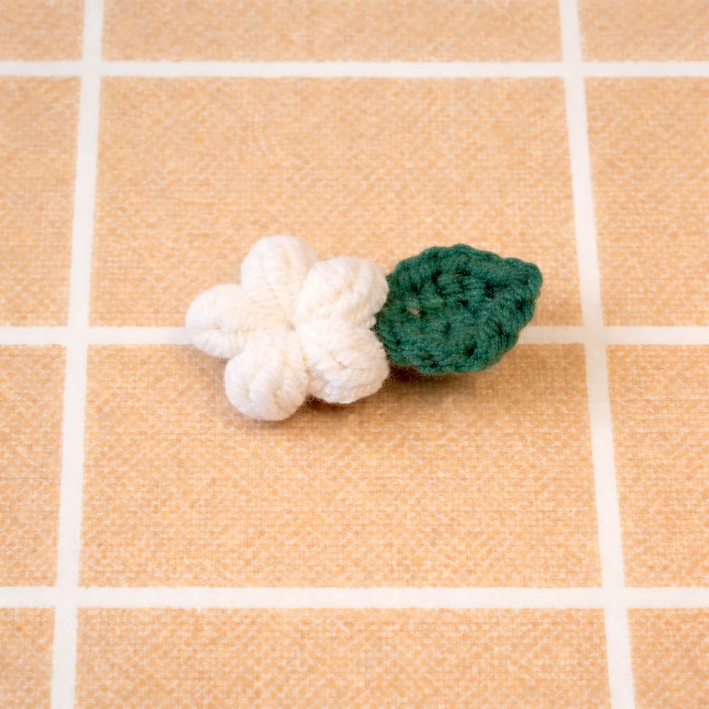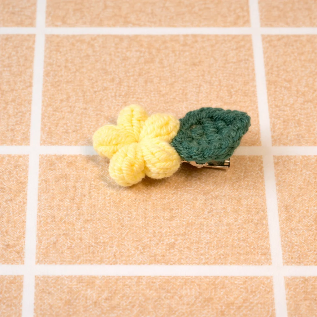 Kẹp hoa Tiny Bloom được làm thủ công từ len mềm mịn, form hoa 5 cánh tròn đều, kết hợp lá xanh nhỏ xinh tạo cảm giác tự nhiên, dịu dàng. Thiết kế mini nên cực kỳ dễ dùng: kẹp mái, kẹp nửa đầu, hoặc mix nhiều màu cùng lúc đều xinh.