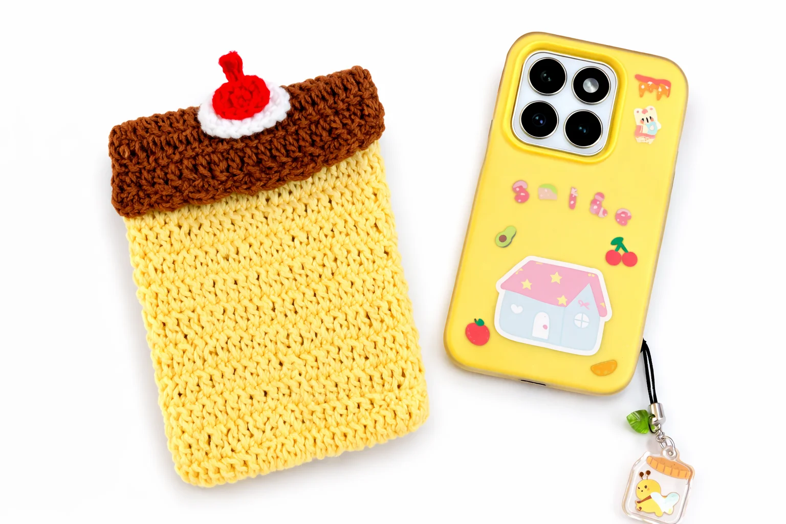 Túi đeo điện thoại bánh flan len handmade của Chút Chíu là món phụ kiện nhỏ xinh dành cho những ai yêu thích phong cách dễ thương và độc đáo. Sản phẩm được móc thủ công từ sợi len mềm, tạo hình chiếc bánh flan đáng yêu với lớp caramel, kem và quả cherry nổi bật phía trên.